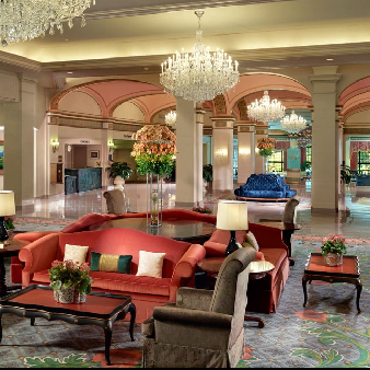 The Omni Shoreham Hotel is a distinguished landmark in Washington, D.C., located in the Woodley Park neighborhood overlooking Rock Creek Park. Since opening in 1930, the hotel has hosted world leaders, dignitaries, and historic events. This elegant property offers a sophisticated setting with modern amenities, including extensive meeting and event spaces, on-site dining, a fitness center, and landscaped gardens. Convenient access to the Metro, the National Zoo, and downtown D.C.